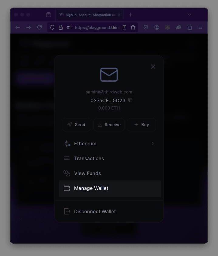Learn how to export the private key for a thirdweb wallet using the Connect modal.